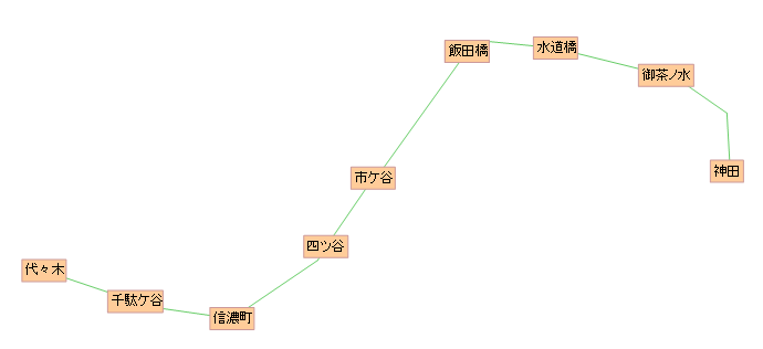 前回掲載した駅名表示付の二次線分による中央線の路線図を再度表示させましょう。